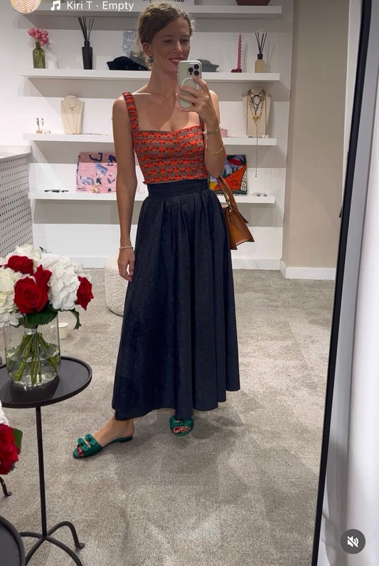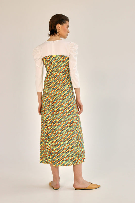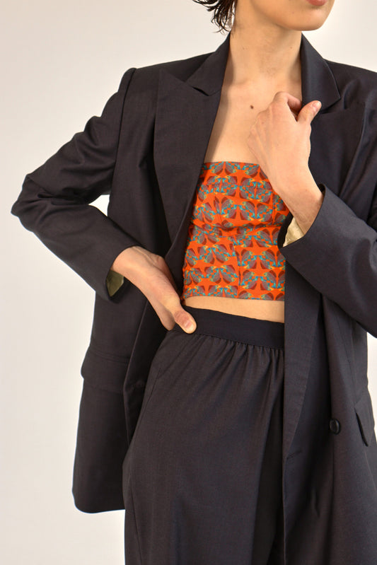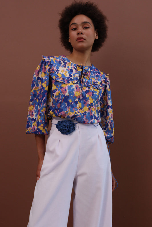 Silk Tie-Die Blouse with a Peter-Pan collar.