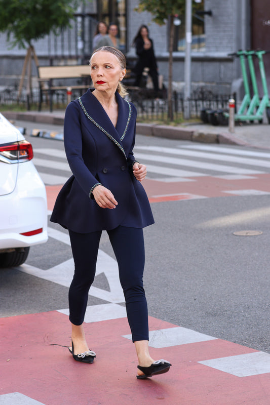 Traje azul mixto cashmere con pantalón ancho de tropezzo