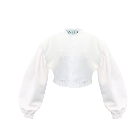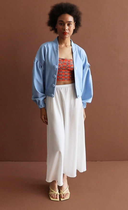 Chaqueta vaquera amarilla con mangas abullonadas.