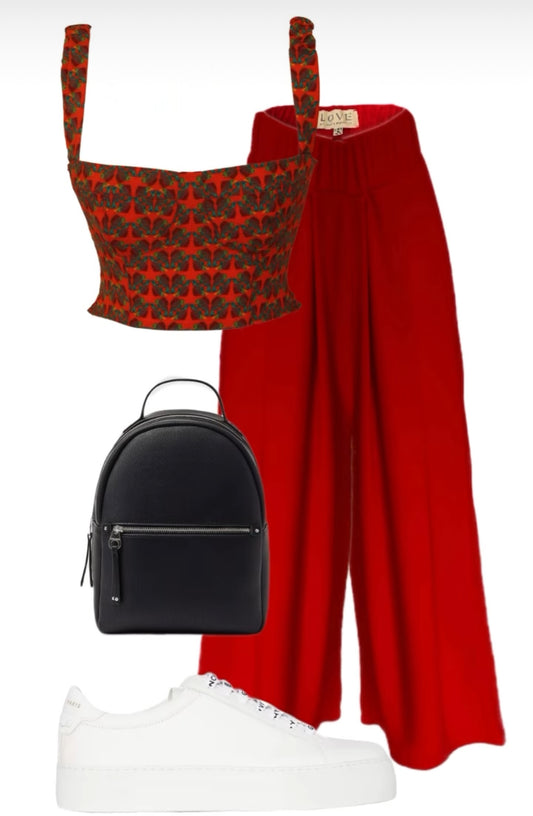Traje rojo mixto cashmere con pantalón ancho trapecio
